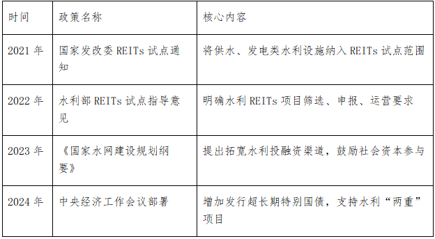 國家戰略錨定方向:《中華人民共和國國民經濟和社會發展第十四個五年規劃和2035年遠景目標綱要》提出“推動基礎設施領域不動產投資信托基金(REITs)健康發展”,將水利設施納入存量資產盤活重點領域;《國家水網建設規劃綱要》明確“拓寬水利投融資渠道,鼓勵社會資本參與”。